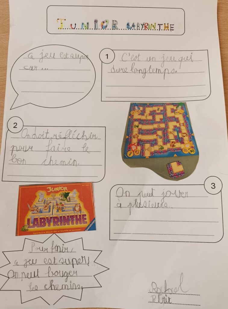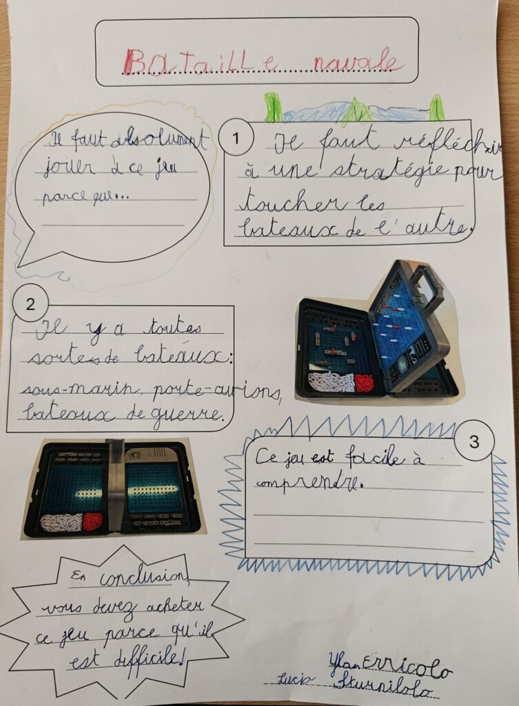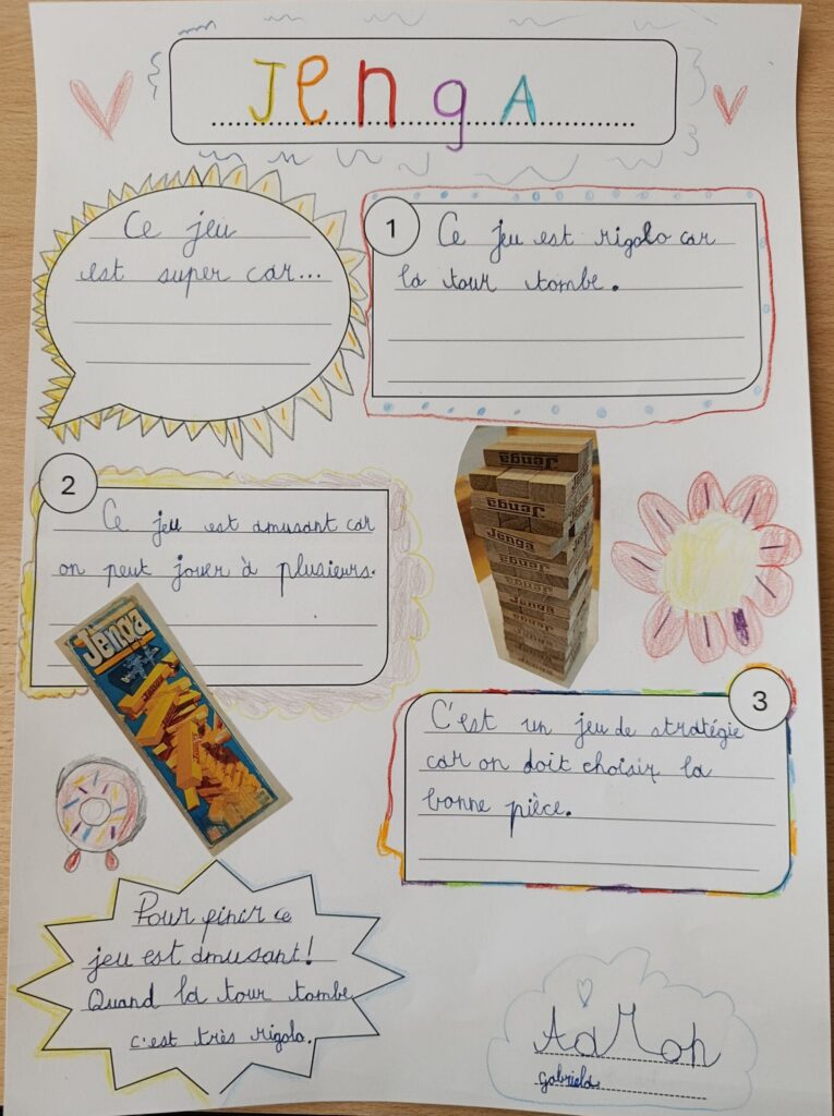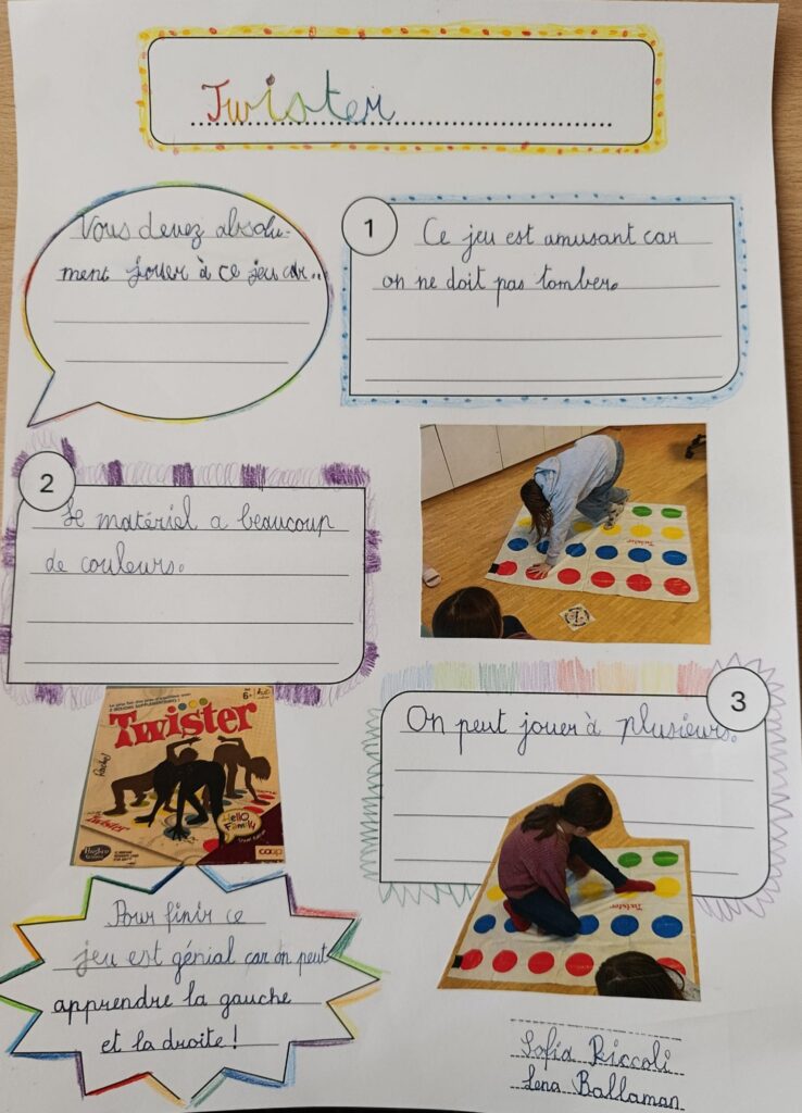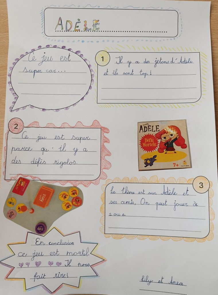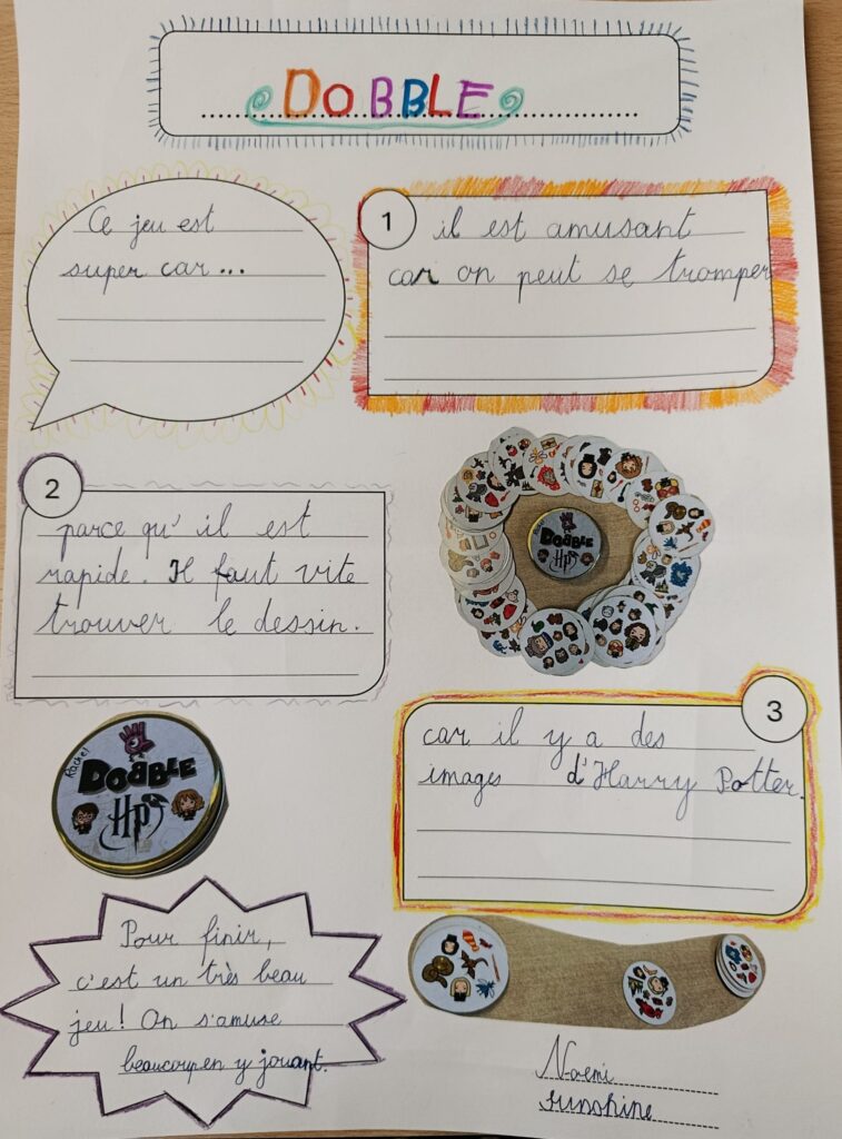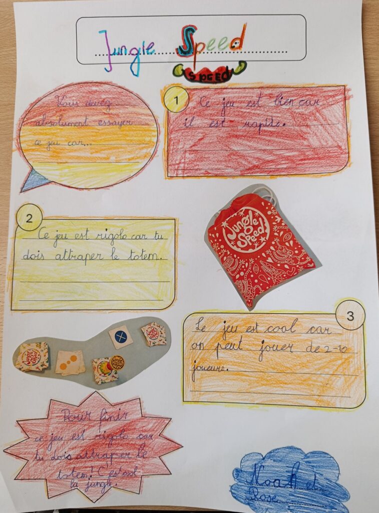 Vous trouverez ici les affiches créées par les élèves de 4H sur le thème des jeux de société. Chaque duo devait créer une affiche dans le but de donner envie à d’autres personnes de jouer à leur jeu. Ils ont cherché des arguments pour susciter l’intérêt et l’envie de choisir leur jeu.